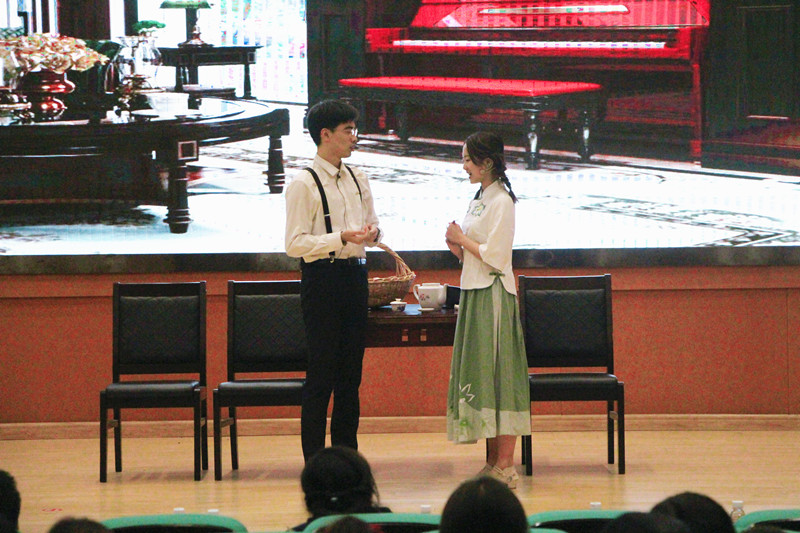 台上一分钟,台下十年功。燃灯戏剧社的成员们在尊重原剧本的基础上精彩打磨,经过数日排练,成功地将《称心如意》这一名家经典呈现在舞台上。演员们深入人物内心,结合时代背景,用心体味剧本中的人性善恶与是是非非。幕后的同学们进行了大量准备工作,为舞台设计了恰到好处的拉幕与背景音乐,营造出了良好的文化艺术氛围。错落有致的场景布置,贴合人物性格的服装设计和别有韵味的腔调语调,让同学们身临其境。现场气氛热烈,掌声不断。