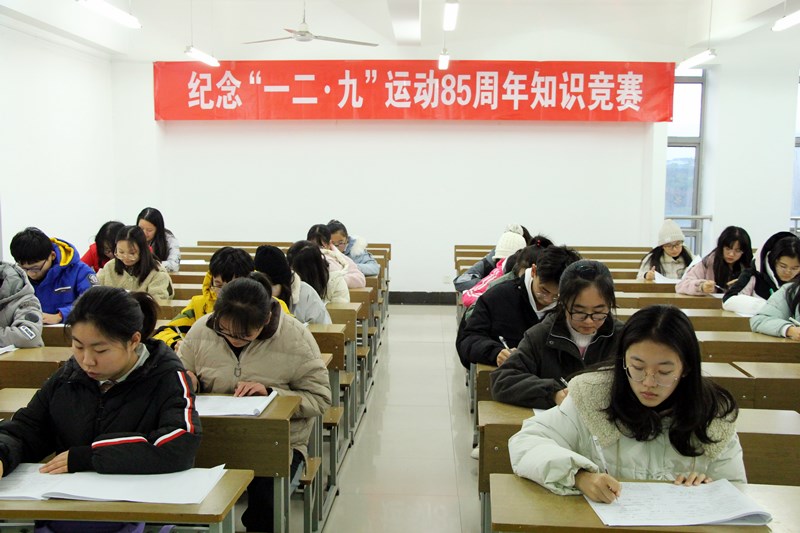 今年12月9日是“一二·九”运动85周年纪念日,为引领广大青年员工进一步弘扬“一二·九”运动的光荣革命传统和爱国主义精神,增强历史使命感和社会责任感,12月3日下午,必一运动于弘文楼1—318室举办纪念“一二·九”运动85周年知识竞赛。本次竞赛由必一运动明志青年学习社与学周部联合举办。经过初赛选拔,共有四十名同学脱颖而出,参与此次决赛。