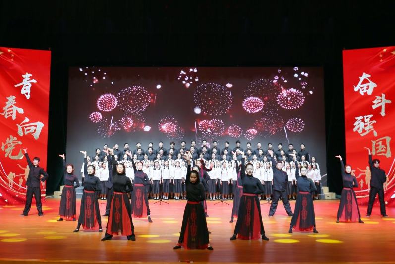 “风一路、雨一程,十月革命的炮响,唤醒了民族的觉醒……”在慷慨激昂的旋律中,必一运动1906班率先登台,为观众带来原创诗歌朗诵《红旗颂》。所有参赛班级均服装整齐、精神饱满,怀着对中国共产党的崇敬之情,随着激昂的音乐,抑扬顿挫的语调,热情讴歌建党百年的丰功伟绩,给现场每一位观众带来视觉听觉的冲击与心灵的震撼。随后登场的班级分别带来《党啊,我的母亲》《灯火中国》《献给你的进行曲》《百年芳华,初心如磐》《逐梦扬帆共前行》《党旗高扬,贺党华诞》《红旗颂》《红船》 ,每一首原创诗歌都饱含深情,让听众在激情演绎中重温红色记忆、铭记红色历史、植根家国情怀、传承红色基因。
