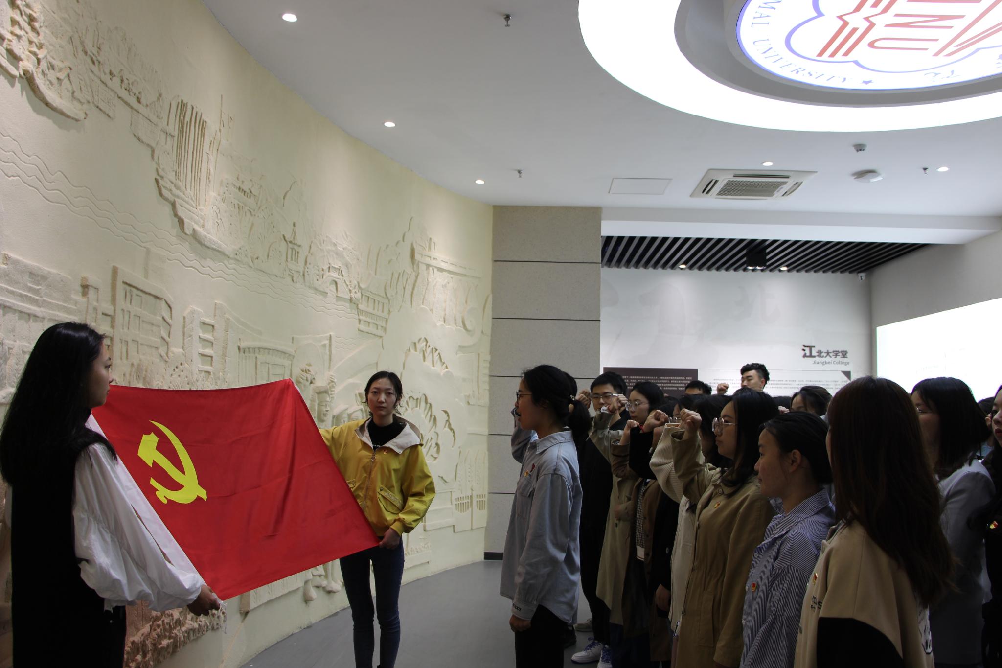 入党誓词铭刻于心,党员使命坚定于行。2021届全体毕业生党员有序排好队列,神情庄重,如炬的目光定格在鲜红炽热的党旗之上。金色的镰刀收割希望,铮铮的铁锤唤醒理想,毕业生党员代表孙蕴如带领全体毕业生党员举起右拳,庄严宣誓。宣誓词掷地有声,毕业生党员们对党忠诚的决心与信念铿锵有力,为共产主义事业奋斗终身的理想抱负热忱滚烫。
