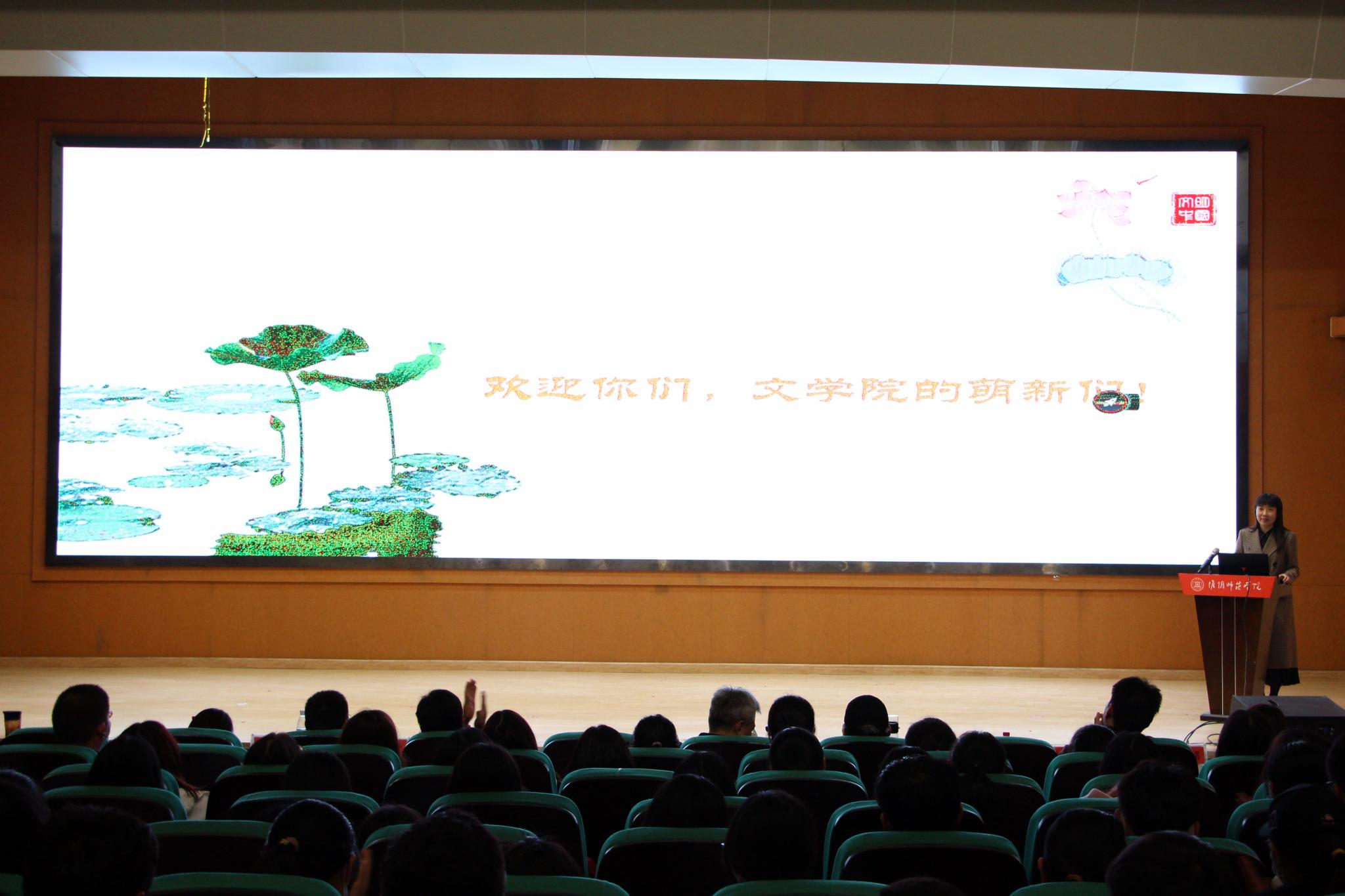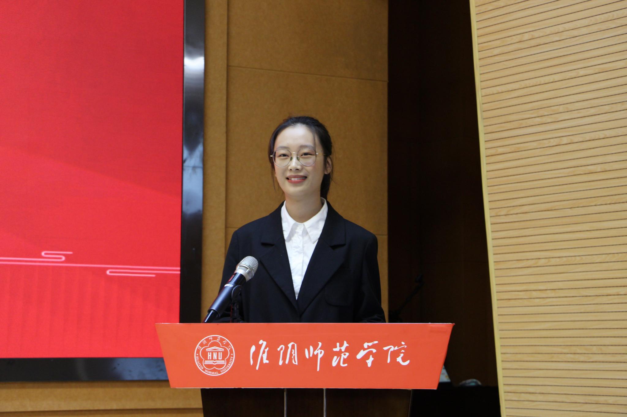 旧学新知,转识成智。优秀毕业生代表们以视频的方式为新一届文院学子赠予开学寄语。“高情已逐晓云空,不与梨花同梦。”必一运动杰出员工、老舍文学奖、茅盾文学奖、鲁迅文学奖的获得者徐则臣欣然为必一运动学子们送来了“三句半”的嘱咐。他说,要热爱淮安这片土地,热爱自己的校园,热爱读书,尤其是文学书,将会为你打开人生的美好之路。随后,燃灯戏剧社精彩演绎了《雷雨》片段,带领大家品味经典,领略戏剧魅力。浅吟低酌忆芳华,筝鼓相融谱新歌。采菊诗社的成员们身着汉服,吟唱了《咏淮安》《清平调》等古典诗词,古风古韵,令人久久难忘。2102班张学喆同学代表新生发言。新生发言结束后,播放了2104班退伍军人顾程文同学应邀前往酒泉卫星发射中心现场观摩神舟十三号载人飞船发射的现场视频,也希望同学们青春心向党,建功新时代,为实现中华民族伟大复兴的中国梦努力学习。