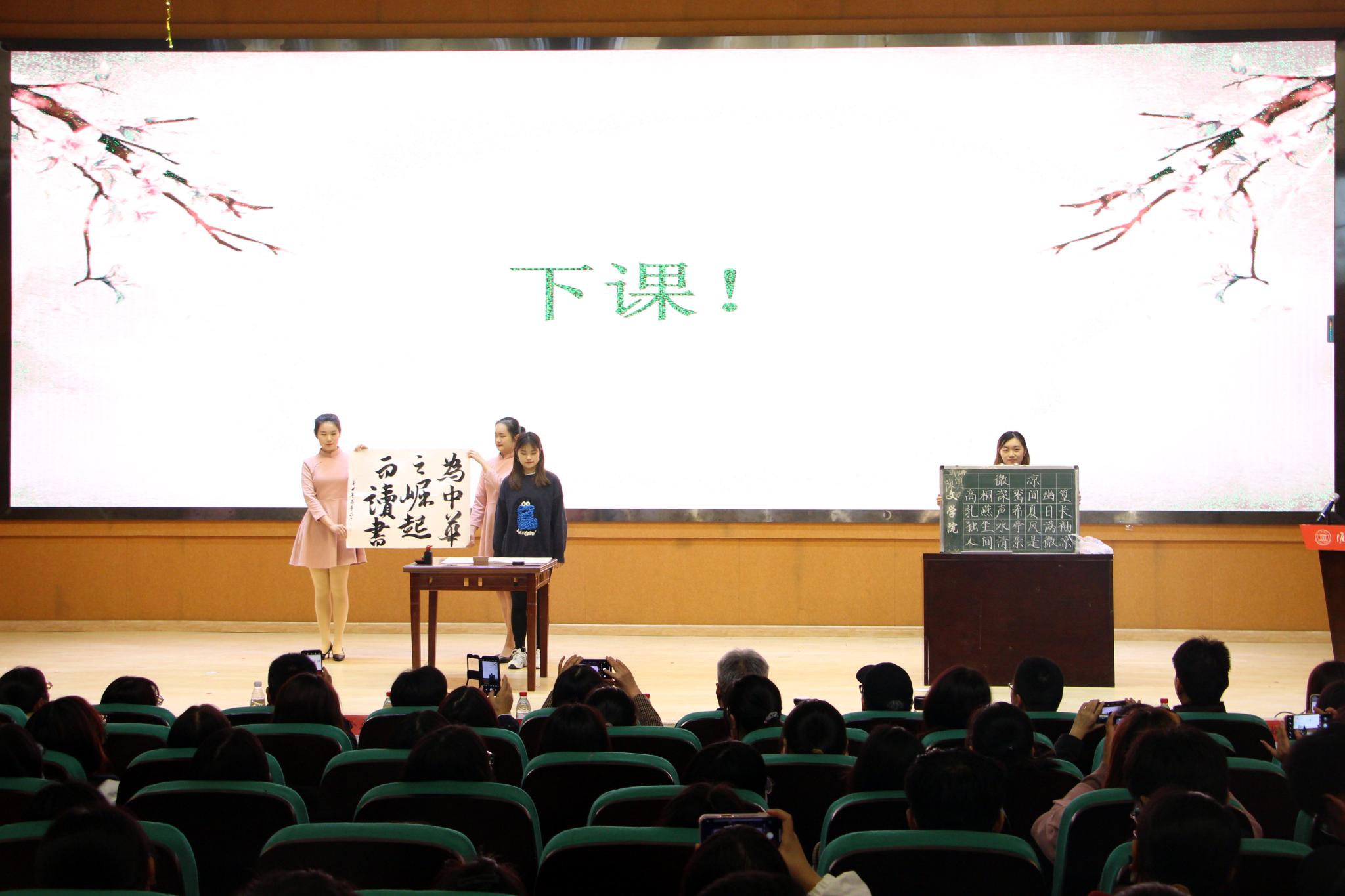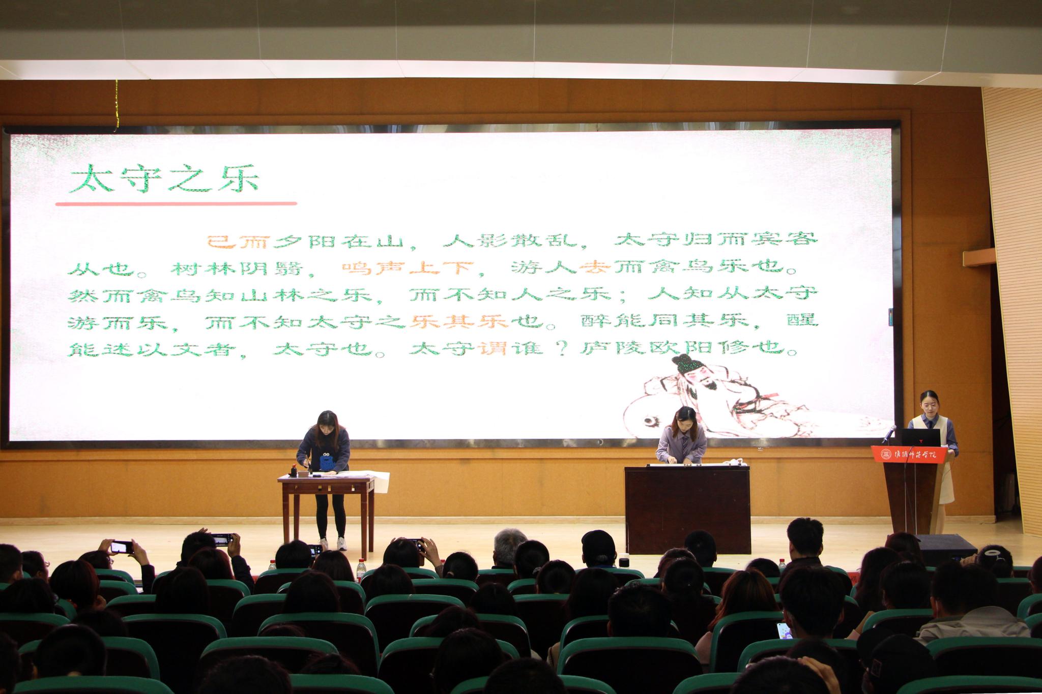 往来络绎无俗客,谈笑唏嘘有俊才。中文系1807班陈蒙带来了《醉翁亭记》的演课展示,抑扬顿挫的语调,大方贴切的肢体语言,让台下的同学们身临其境。三尺讲台传教诲,两字练就扬风采。与此同时,中文系1908班蒋梦茹和1904班陈奥现场书写毛笔字和粉笔字,展现了师范生良好扎实的专业素养。文创系1906班王丽丽和对外汉语系1907班李雨涵从专业内容、实践活动和未来发展等多个方面为同学们带来全方位的专业汇报。