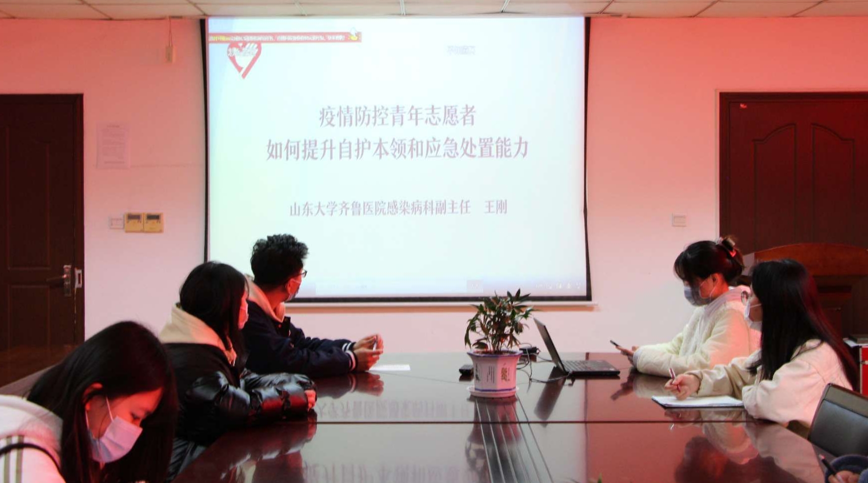 广大志愿者是新冠疫情防控过程中的重要支柱,因此个人防护对志愿者来讲是至关重要的。王刚主任就如何加强志愿者的个人防护提出三点要求,即志愿者们要充分了解新冠病毒的传播途径、正确佩戴防护用品、注意保持手部卫生和消毒。在志愿者应急事件处置的问题上,他建议志愿者们从生理和心理两方面入手,既要保证好自己的身体健康,也要在面对受助者突发情况时做到沉着冷静,在应急情况下迅速作出正确反应。王刚主任充分肯定了青年志愿者在疫情防控中所呈现的奉献他人、舍己为人的无私精神,号召同学们坚定“同心抗疫!共克时艰!”的勇气和信心。