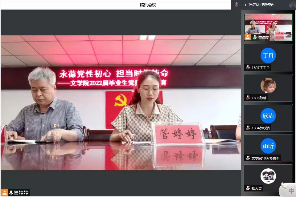 潘陈程宣读《2022届毕业生文明离校“六个一”倡议书》,向全体毕业生提出倡议,希望毕业生牢记“坚守朴实 追求崇高”的淮师精神,以更好的状态踏上新征程。管婷婷布置了毕业生党员离校前具体工作,对党员提出了“六个一”要求,增强了党员的先进意识和社会责任感,并对党组织关系接转、党员材料档案调出、宿舍结对共建等问题进行了细致讲解。何叶宣读《毕业生党员文明离校承诺书》,承诺毕业生党员将在未来的学习、生活和工作中,注意言行举止,保持党员形象,为母校争光。