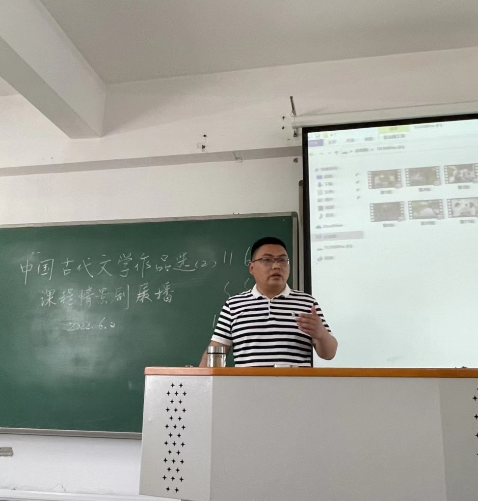 为落实《中国古代文学作品选》课程“大语文”教学理念,检验教学改革成效,6月2日,必一运动葛志伟老师于弘文1-316室组织开展一堂别开生面的课程作业展播课。葛志伟老师课前介绍说:“所谓‘大语文’教学,不仅包括课程内容的拓展,还意味着教学方式的更新。‘大语文’教学是《中国古代文学作品选》课程自我革新的重要途径,契合立德树人的宗旨。”
