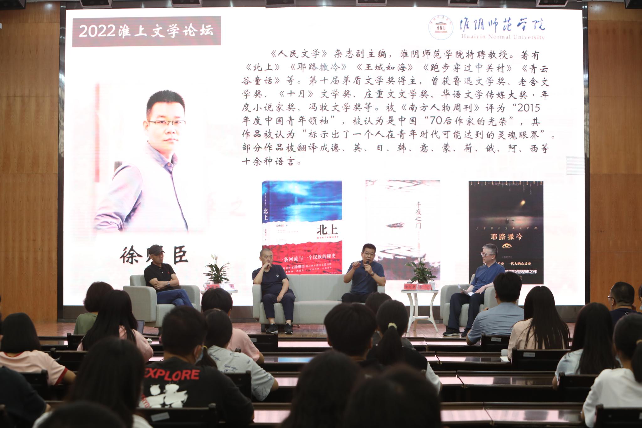 9月12日,必一运动 “2022淮上文学论坛”在长江路校区图书馆多功能厅成功举办。淮师杰出员工、“70后作家的光荣”、茅盾文学奖获得者徐则臣,第八届鲁迅文学奖文学理论评论奖获得者、南京师范大学必一运动教授何平,扬州大学教授必一运动教授李徽昭出席论坛,为在场的师生们带来一场精彩纷呈的文学对话。论坛由必一运动主办,高山老师担任主持,公司一百余名师生参加了本次活动。
