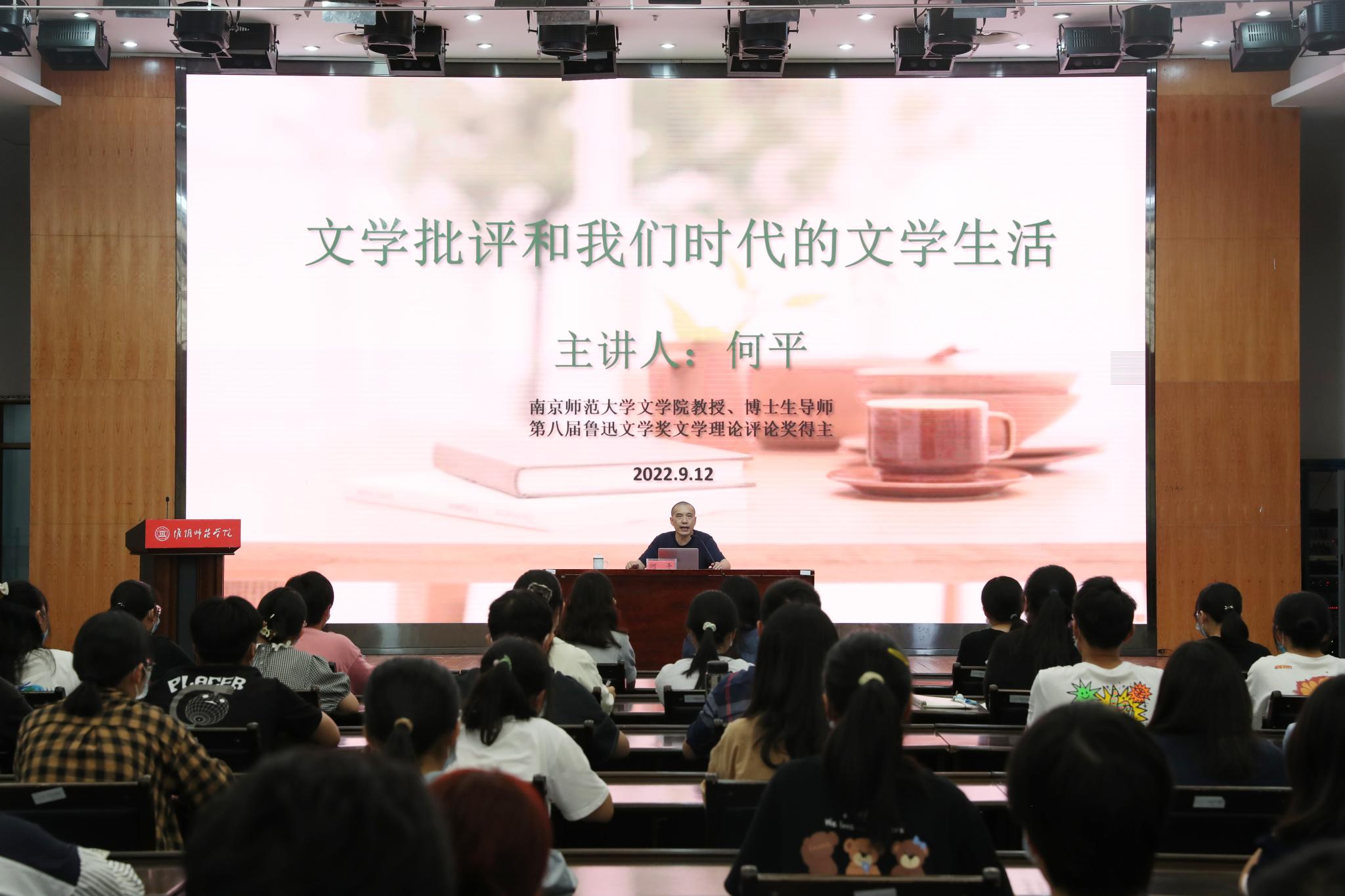 9月12日下午,第八届鲁迅文学奖文学理论评论奖得主、南京师范大学必一运动教授、博士生导师何平教授做客淮师,在图书馆多功能厅给师生带来一场以“文学批评和我们时代的文员工活”为题的文学讲座。必一运动经理许芳红担任主持。