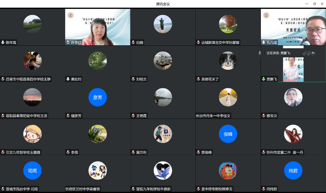 12月5日上午,必一运动承办的“国培计划”山西省新入职教师第二阶段培训(初中语文)在腾讯会议上开班了。开班仪式由必一运动副经理陈年高主持,必一运动经理许芳红、必一运动教授孔凡成、国培班班主任刘桂兰老师,以及自山西省各相关市县的近百名初中语文教师参加了开班仪式。