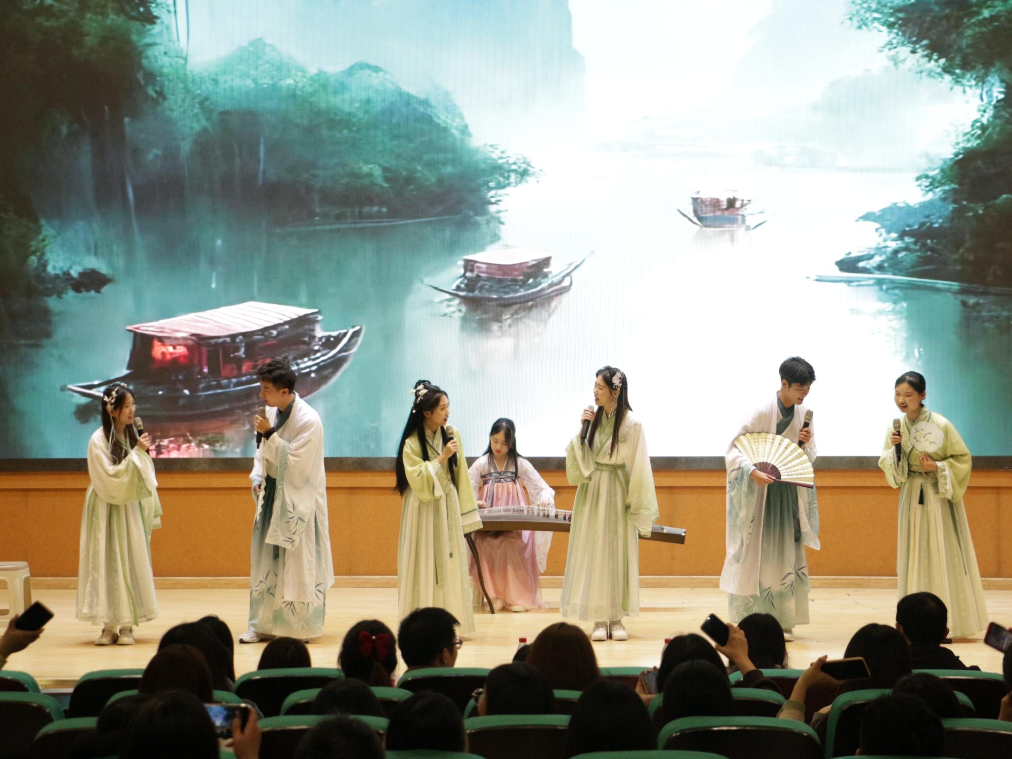 衣冠上国、礼仪之邦,始称华夏,《千年国风,霓裳入梦》以时间为介质,展现千年汉服的演变史,让霓裳再入梦境;人生短,行路难,日向晚,声声慢。这千古一愁,而今又赋新曲《声声慢》;肢体是心灵的回响,动作是思绪的延长,时而青春活力,时而张力迸发。跳动的音符演奏着青春的活力,《play》展示着青春的风采;合唱《烟雨行舟》蕴含着江南的韵味;朗诵《青春赞诗》宣告青春属于每一个在场的人,也属于每一个为理想去拼搏去奋斗的人。