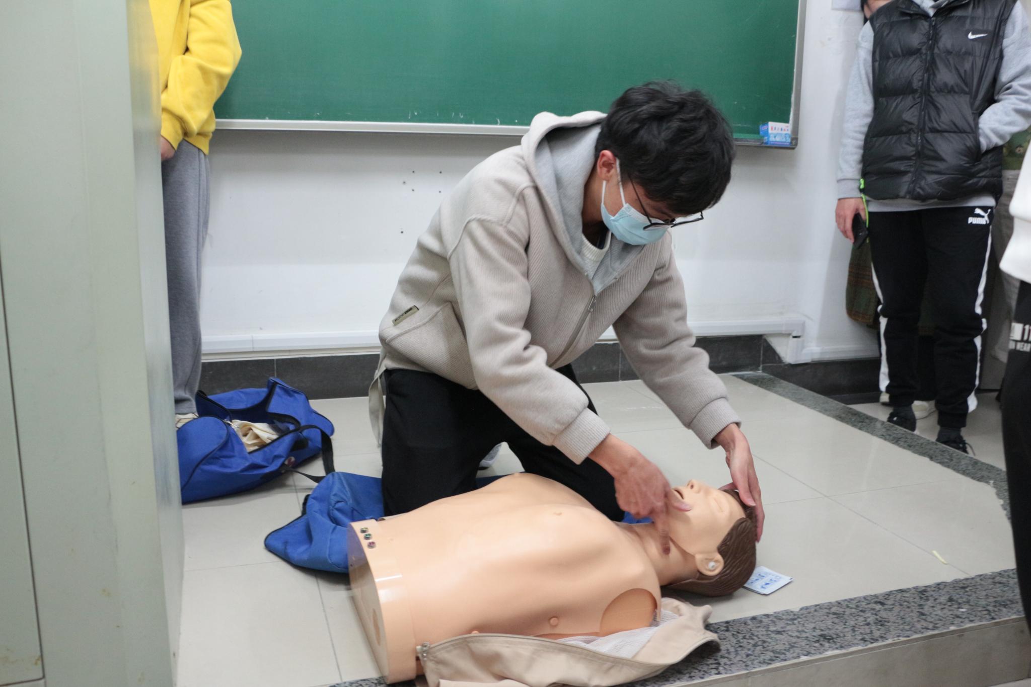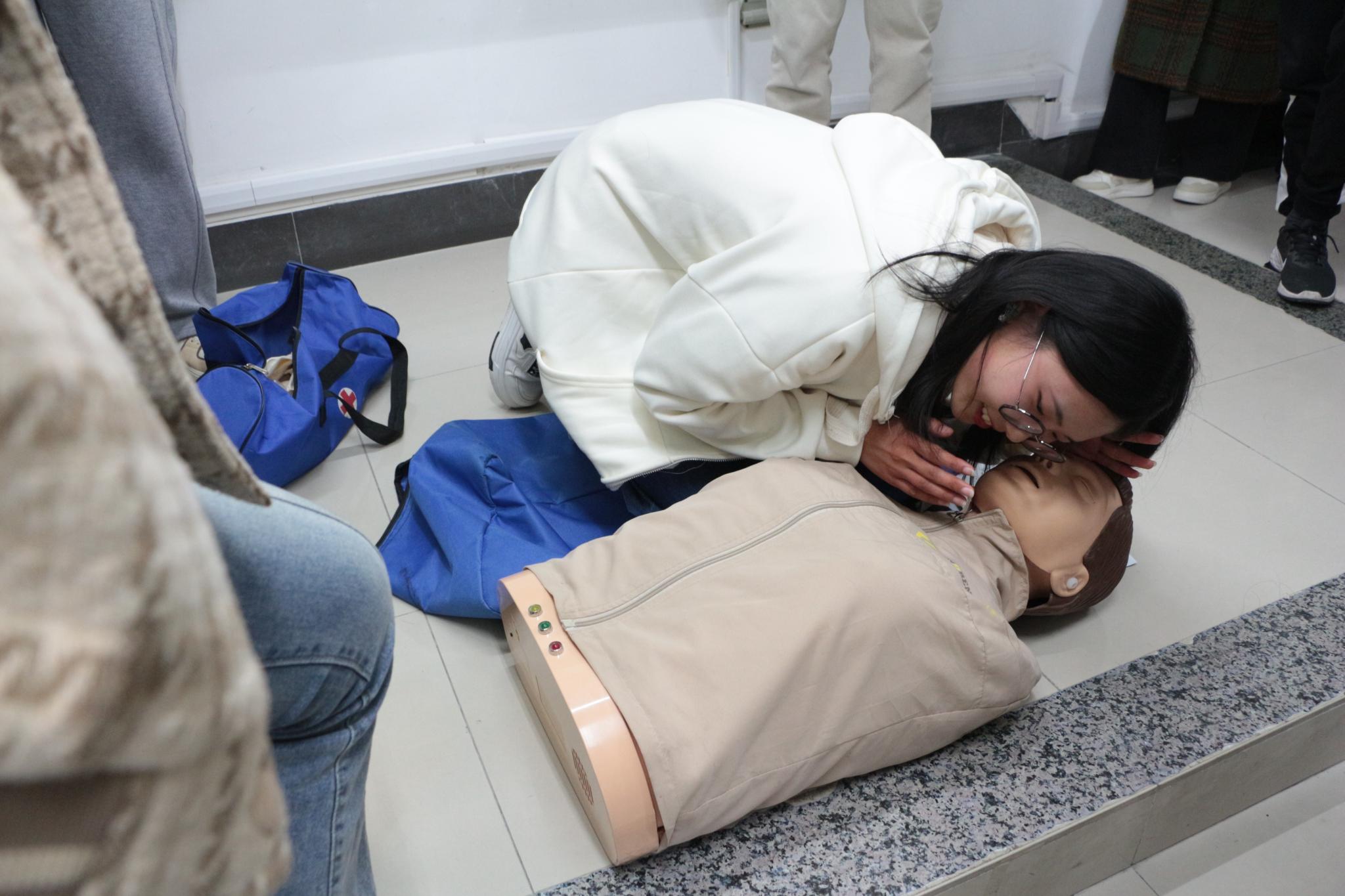 全体参会人员在杨森的一一指导下进行了心肺复苏的现场模拟。通过亲身实践,同学们加深了对所学内容的认知,熟悉了操作中需要注意的细节规范,同学们初步掌握了急救知识和技能,增强了同学们在意外伤害和突发疾病时及时有效地实施自救和互救的能力。