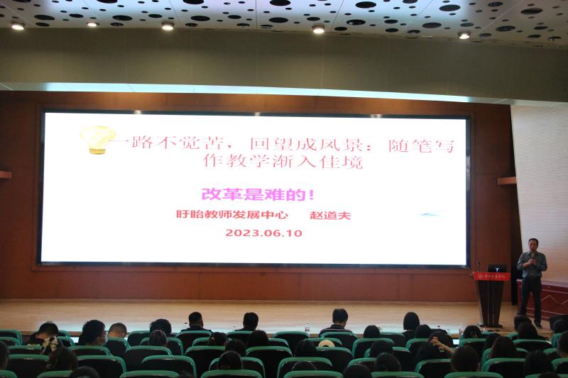 图为赵道夫作题为《一路不觉苦,回望成风景:随笔写作教学渐入佳境》的授课分享。