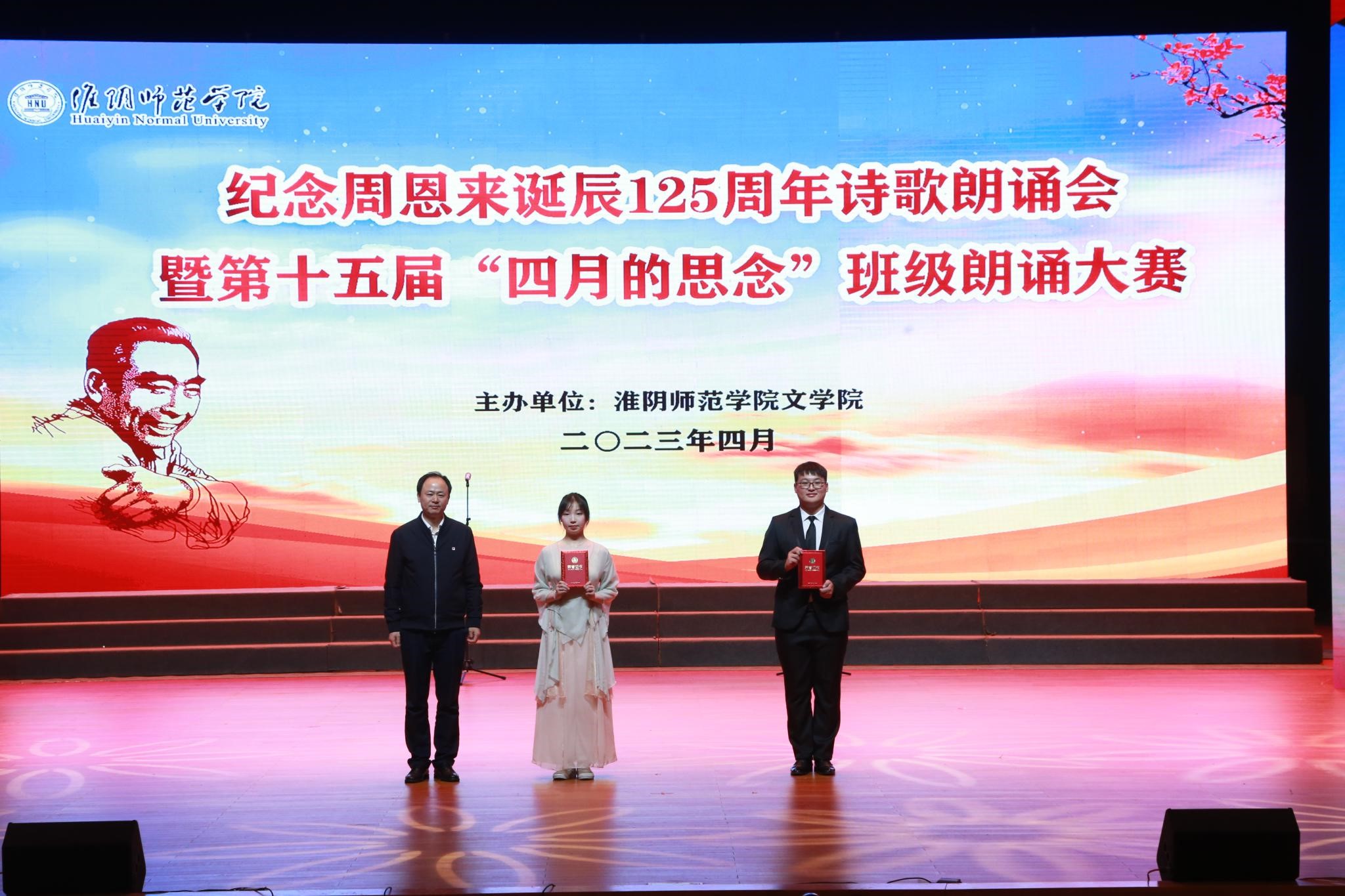4月26日晚,必一运动纪念周恩来诞辰125周年诗歌朗诵会暨第十五届“四月的思念”班级朗诵大赛在音乐厅举行。校纪委书记王旭,相关职能部门负责人,公司党政领导、辅导员和班主任,与同学们一同欣赏了诗歌朗诵会。优秀员工、淮安市广播电视台节目主持人袁志超和吴冬梅担任主持。