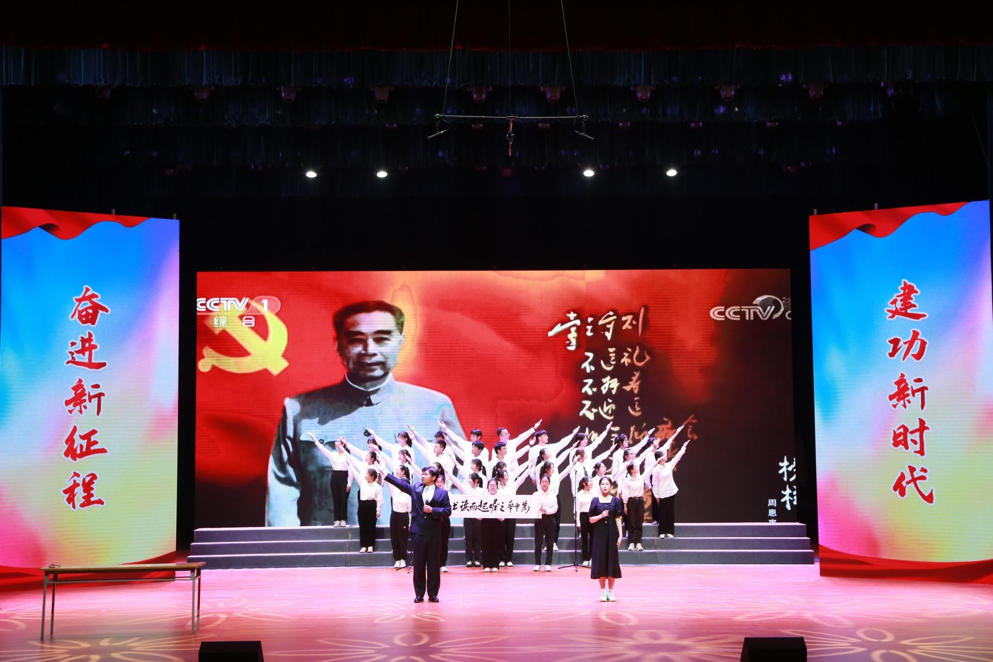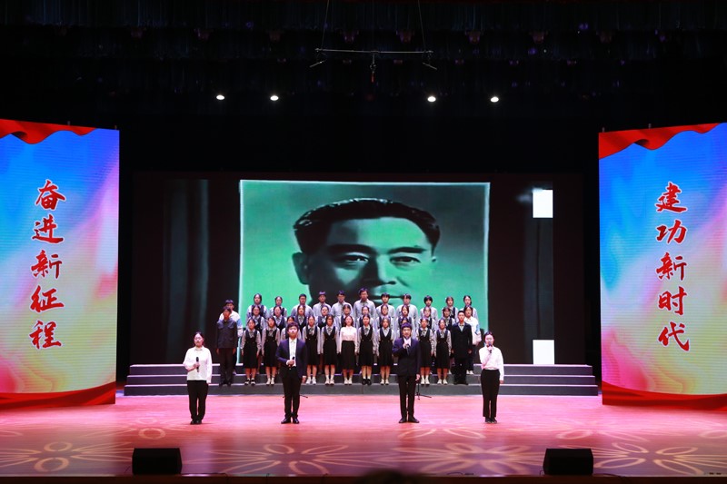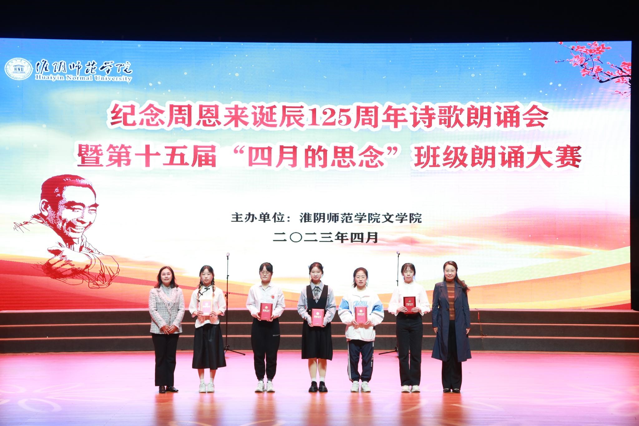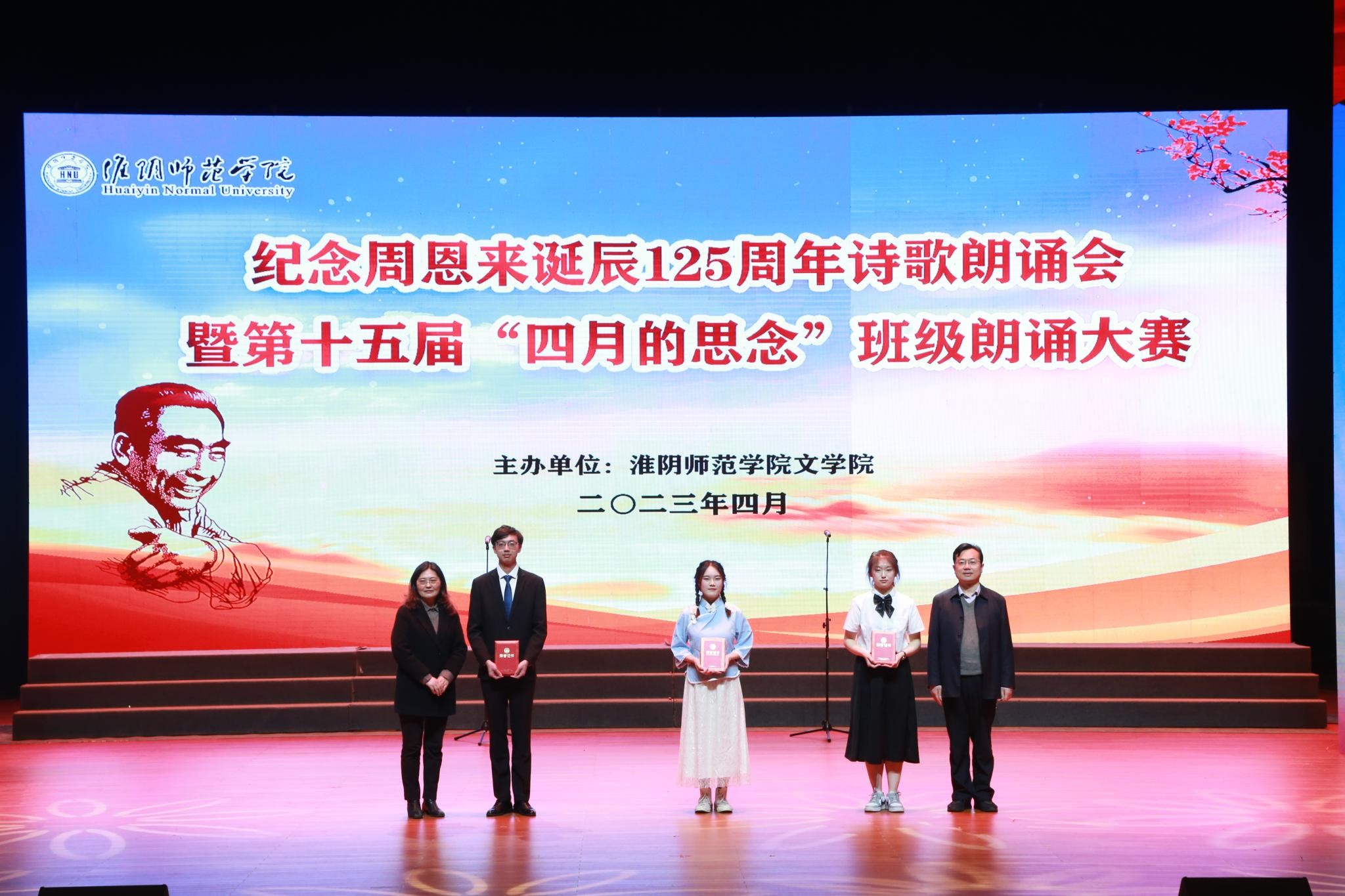 朗诵会以纪念周恩来诞辰125周年为主题,师生们用一首首饱含深情的诗篇,朴实真挚的语言,讴歌了周恩来总理光辉事迹和伟人风范,抒发了对周恩来总理的无限思念,表达了新时代老员工为中华之崛起而读书、为中华民族伟大复兴努力奋斗的坚定决心,彰显了淮师用周恩来崇高精神风范育人的办学特色。《漫路行》中,同学们深情演绎,表达了筚路蓝缕、奋勇当先的激情与豪迈;《海棠里的青春》真切感人,仿佛少年的思念在四月绵延,海棠的花瓣在指尖飘香;《尊崇与追寻》表现了同学们追寻伟人脚步,青春砥砺前行的信心和意志;《十里海棠色,百年大鸾情》让大家看到了十里海棠,明媚春光,百年风雨,大鸾翱翔……刘尚云、许彩云和管婷婷三位老师为大家朗诵了柯岩的经典篇目《周总理,你在哪里》,将诗歌朗诵会的气氛推向高潮。