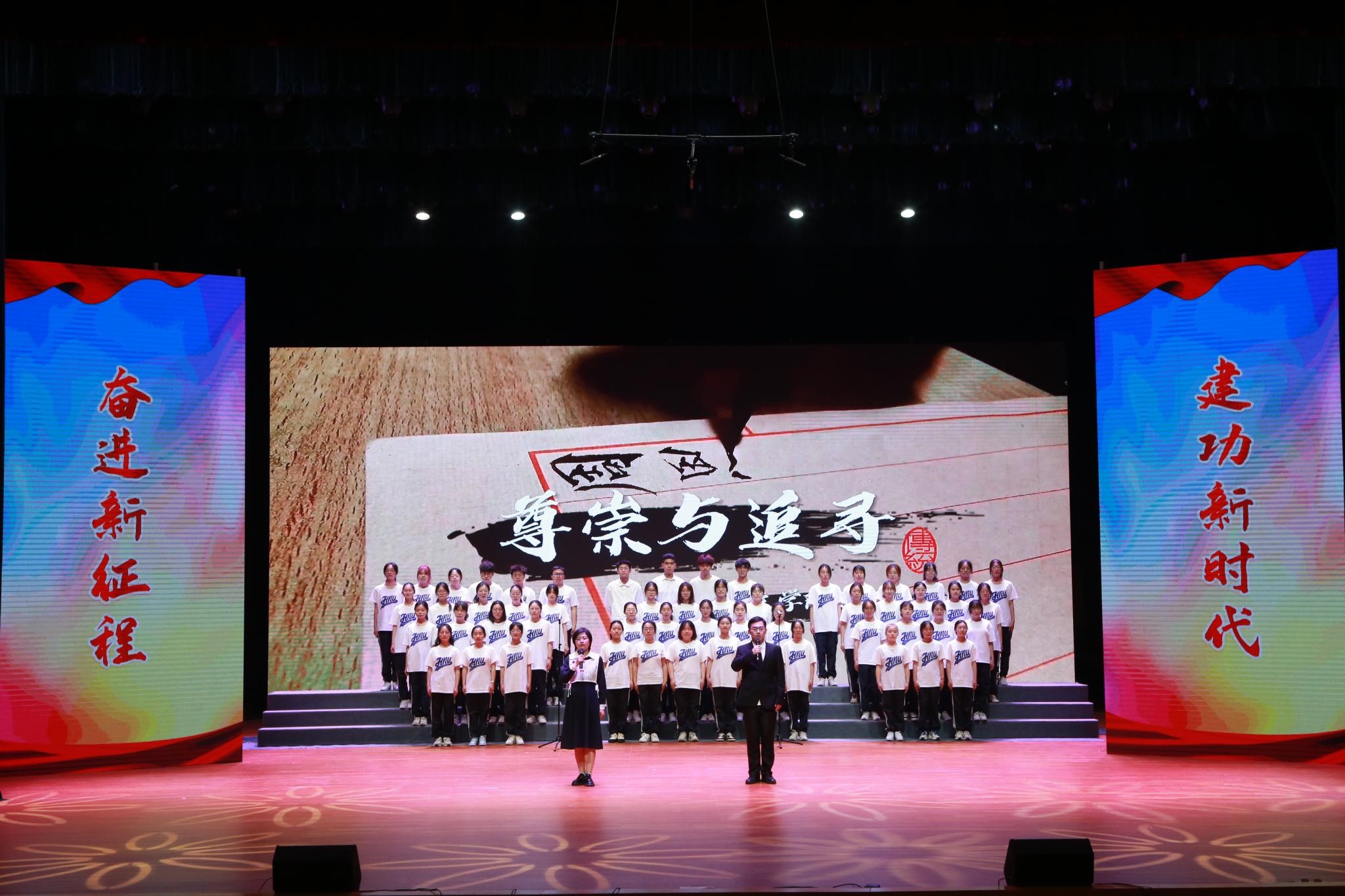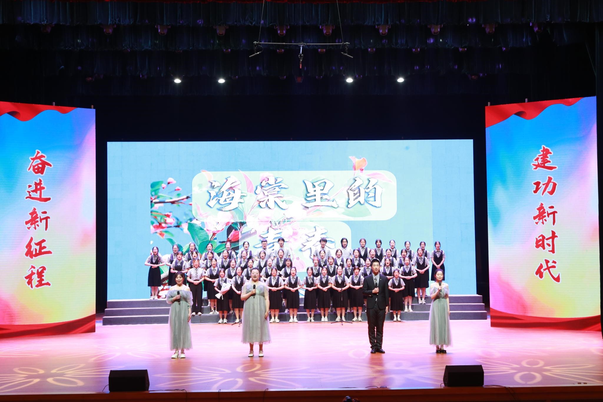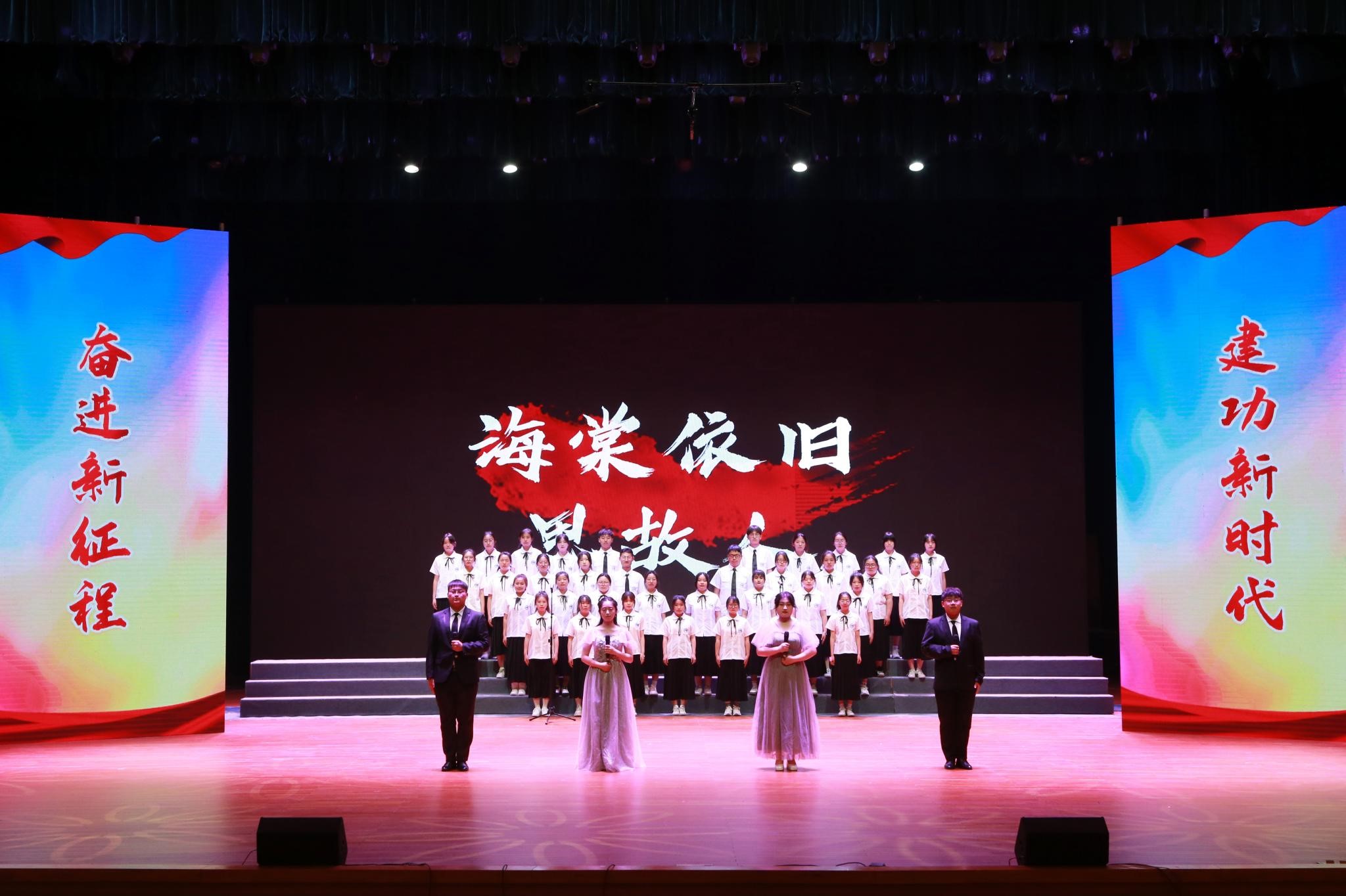 朗诵会以纪念周恩来诞辰125周年为主题,师生们用一首首饱含深情的诗篇,朴实真挚的语言,讴歌了周恩来总理光辉事迹和伟人风范,抒发了对周恩来总理的无限思念,表达了新时代老员工为中华之崛起而读书、为中华民族伟大复兴努力奋斗的坚定决心,彰显了淮师用周恩来崇高精神风范育人的办学特色。《漫路行》中,同学们深情演绎,表达了筚路蓝缕、奋勇当先的激情与豪迈;《海棠里的青春》真切感人,仿佛少年的思念在四月绵延,海棠的花瓣在指尖飘香;《尊崇与追寻》表现了同学们追寻伟人脚步,青春砥砺前行的信心和意志;《十里海棠色,百年大鸾情》让大家看到了十里海棠,明媚春光,百年风雨,大鸾翱翔……刘尚云、许彩云和管婷婷三位老师为大家朗诵了柯岩的经典篇目《周总理,你在哪里》,将诗歌朗诵会的气氛推向高潮。