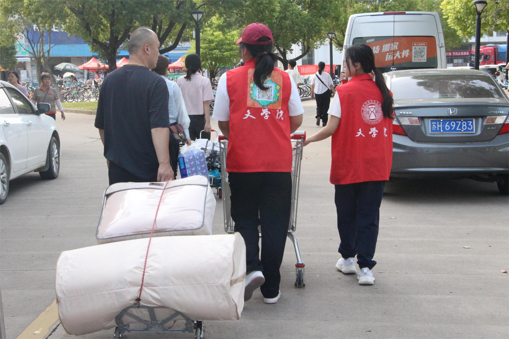 迎新过程中,公司安排小推车等搬运工具,帮助新生将行李送至各宿舍迎新点。志愿者全程热情服务,耐心解答新生们关心的各种问题。