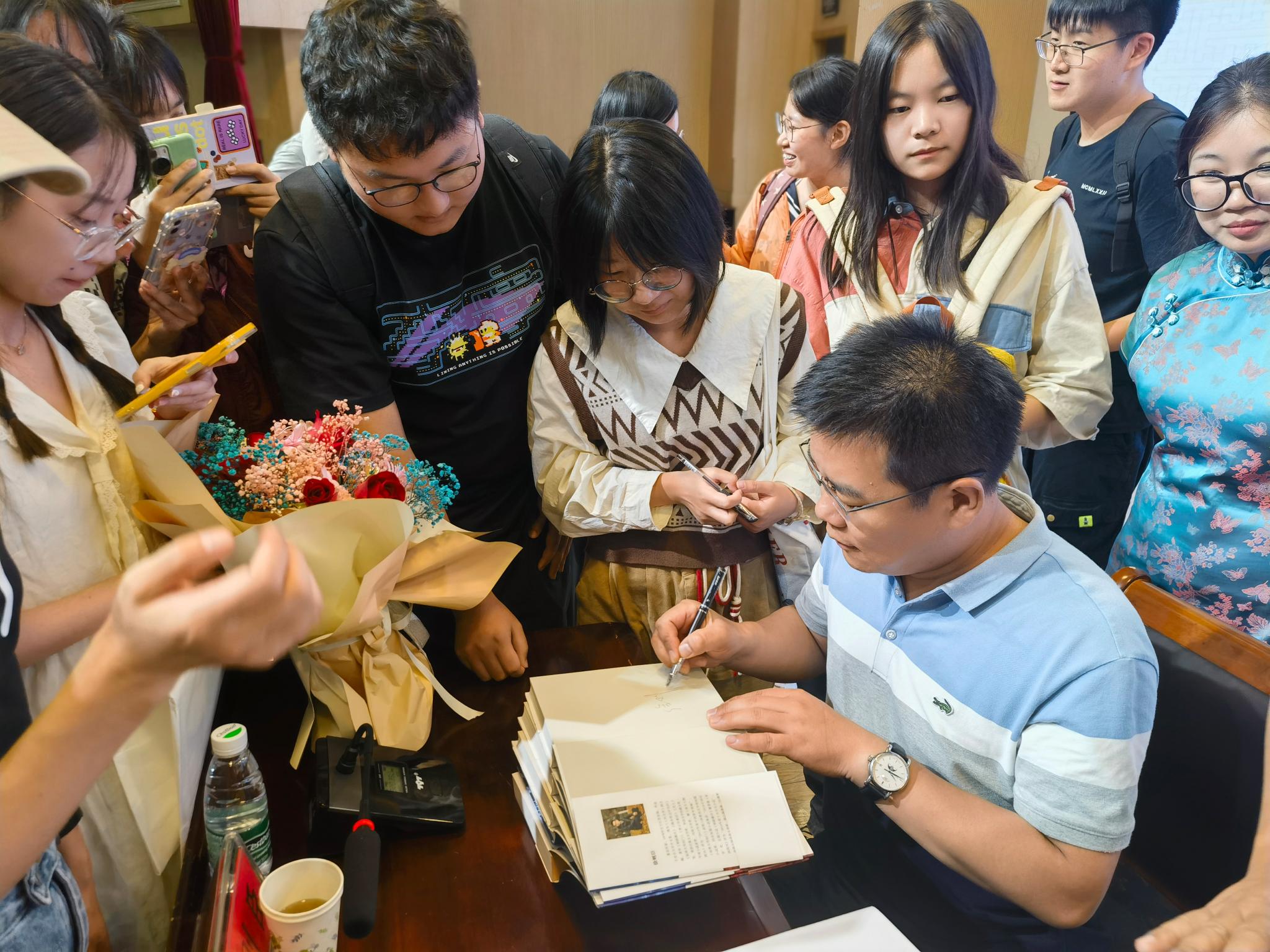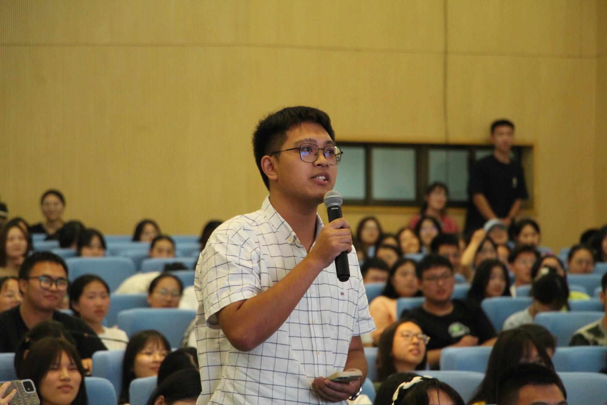 互动环节,同学们就专业学习与文学创作中的疑惑踊跃提问,徐则臣耐心细致地一一回应,精彩的解答引得阵阵掌声。现场气氛热烈,学术氛围浓厚。徐则臣畅谈老员工活与创作经历,探讨文学阅读与人生、生活的关系,既有理论高度,又有现实针对性、趣味性与启发性。