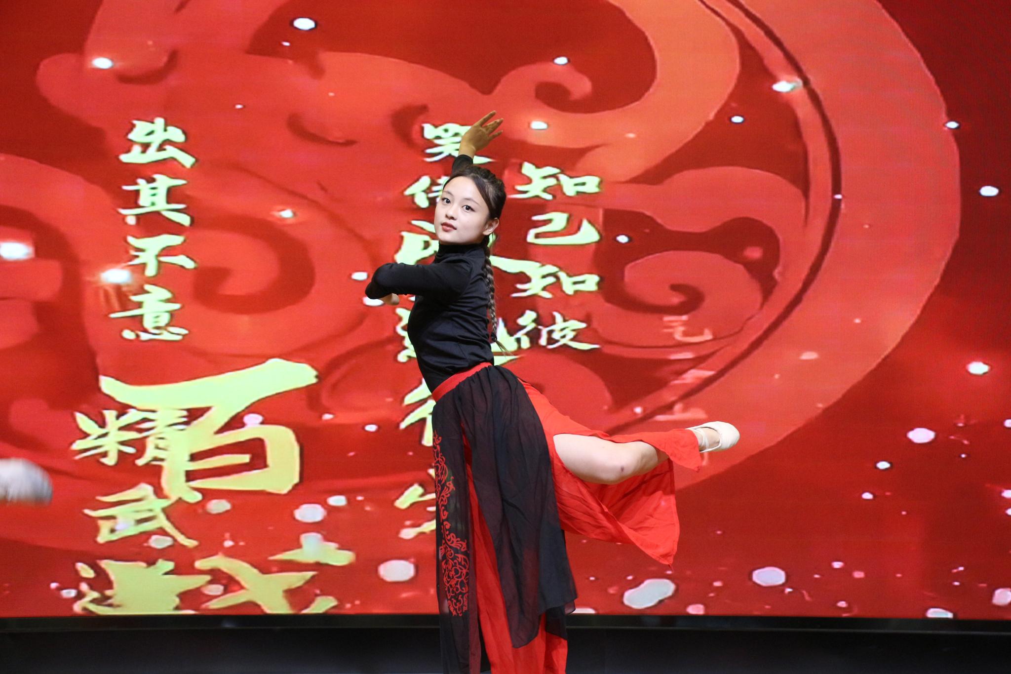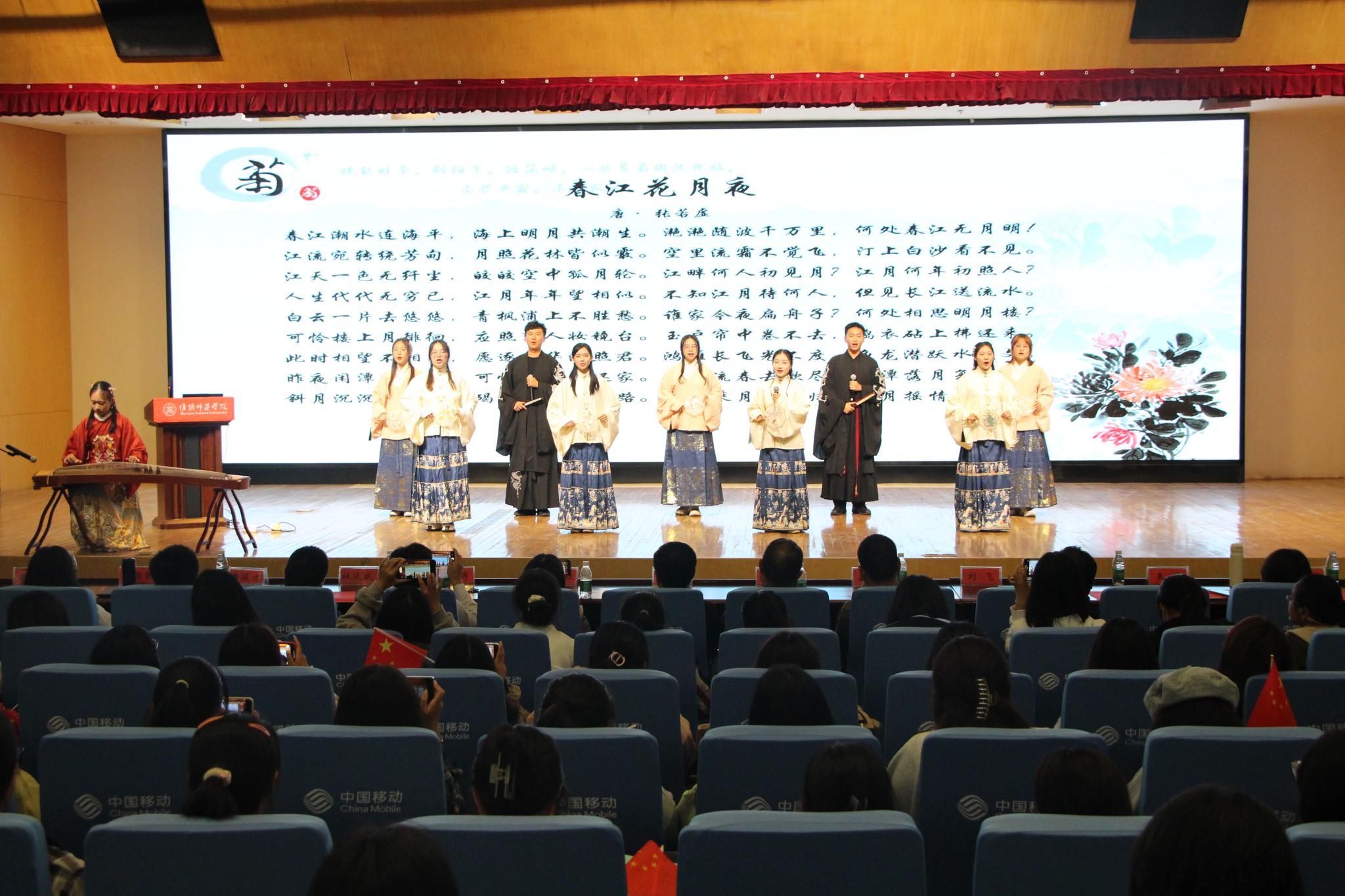 必一运动艺术团和采菊诗社分别表演了国风舞蹈《霍元甲》和诗词吟唱《春江花月夜》,展现出文学学子们的青春风采。