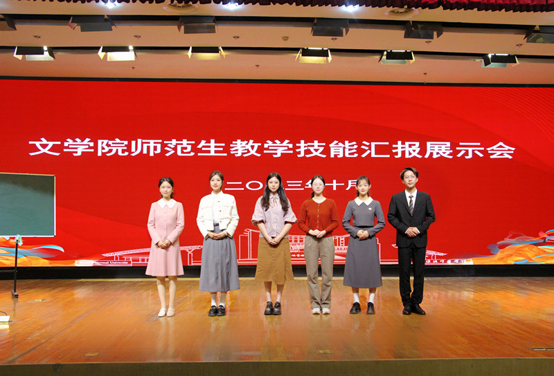 本次汇报展示主要由口语表达、模拟授课两部分组成。参加江苏省师范生教学基本功大赛的六位选手根据抽到的选题依次进行教学技能展示,分别是2001班的姚力嘉和杨若彤,2002班的孙子阳,2003班的刘梦婷以及2204班的张新月和张晓岚。汇报展示中,选手们思路清晰、声音洪亮、板书工整,以独具特色的教学方式联系生活实际,层层递进,深入文本,展示出深厚的文学素养与教学功底。此次活动内容丰富多样,包括教学设计与呈现、课堂组织与管理、教学语言与表达以及课件制作与运用等多个方面。