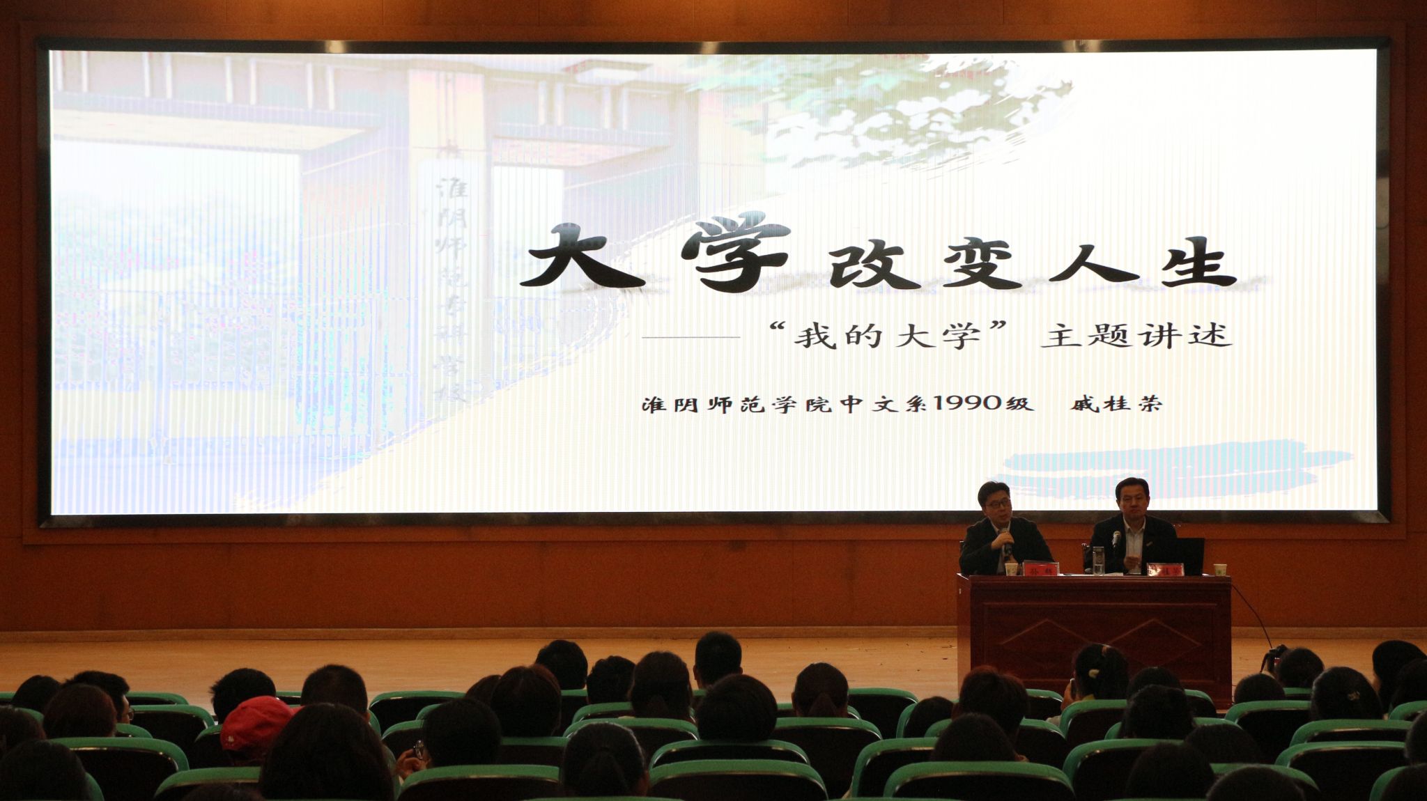 戚桂荣通过四张照片和四个故事,向同学们分享了他的大学故事。通过一张难忘的同学合影,分享了在90届中文系(2)班的学习经历,并表示“学好成绩,永不过时”,指出同学们应学会做人、学会学习、学好专业知识;通过讲述一块草坪的前世今生,引出了班级整体的勤工俭学和社会实践活动,认为勤工俭学在老员工活中大有裨益,有助于同学了解真实社会、增强身体素质、提高适应能力、积累人际关系;通过一段难忘的岗位历练,分享了做好一名员工干部的方法与好处,表示在处理好学习与工作关系的前提下,既要严于律己,也要有服务意识和奉献精神;通过对大学爱情的回忆,向老员工提出“自尊,自爱,自强”三个建议,希望同学们处理好学业与生活的关系。