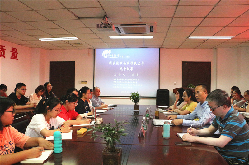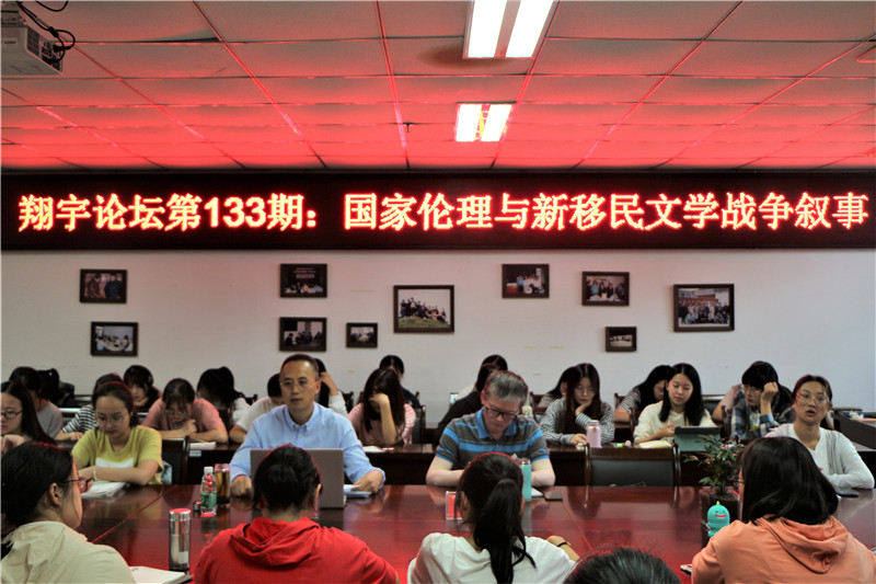 9月28日下午,江苏省社会科公司文学研究所研究员、中国世界华文文学学会研究会理事、江苏省台港暨海外华文文学研究会秘书长、江苏省现代文学研究会理事李良做客必一运动第133期翔宇论坛,作题为“国家伦理与新移民文学战争叙事”讲座。必一运动高山博士担任主持,部分师生聆听本次报告。
