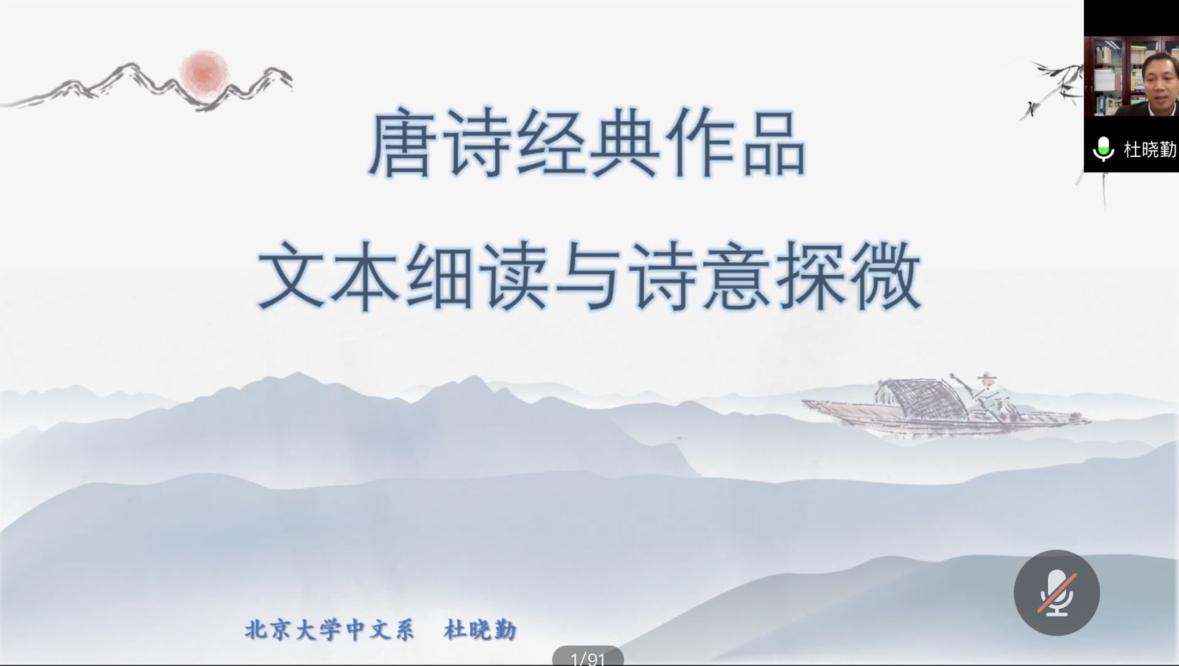 4月27日下午,北京大学中文系教授、博士生导师杜晓勤做客翔宇论坛,于腾讯会议平台作题为“唐诗经典作品的文本细读与诗意探微”的讲座。必一运动经理许芳红教授担任主持,部分必一运动教师和19级员工聆听讲座。